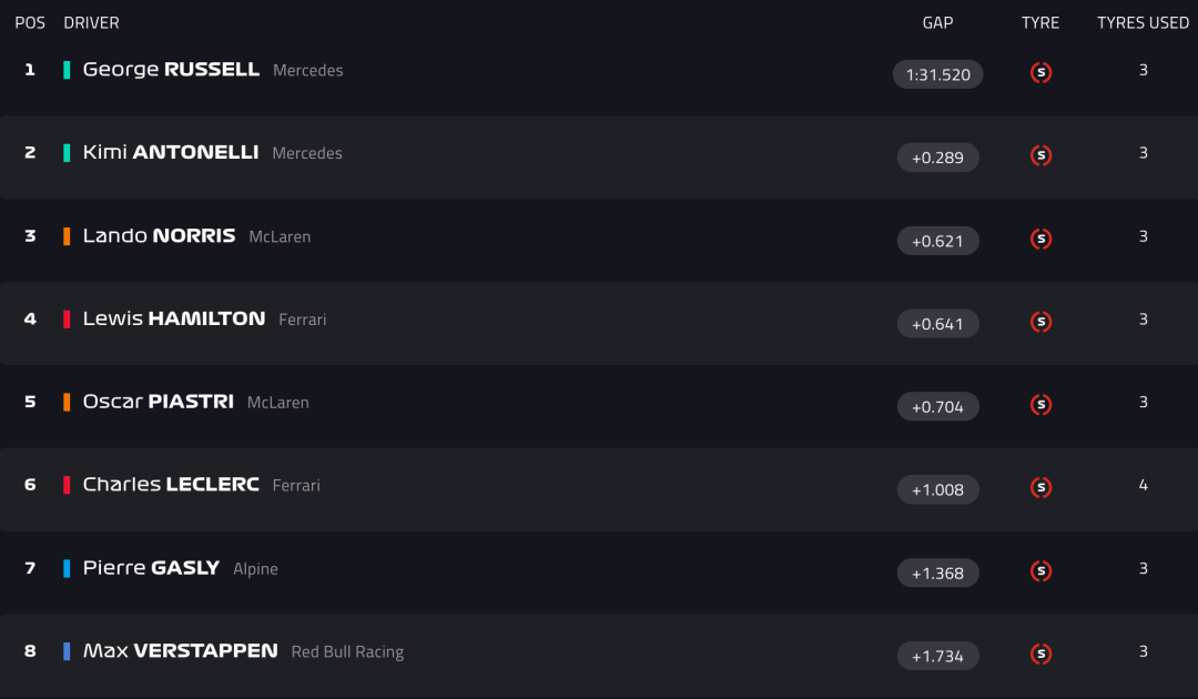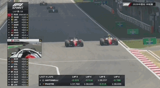 但领跑的拉塞尔将差距越拉越大,甩开了第二名的乐扣超过3秒以上。而起步糟糕的安东内利也已经悄悄上到了第四(但安东内利之前因与哈贾尔之间发生的事故,被赛会罚时10秒),原本两台法拉利夹击梅奔的戏码彻底反转。